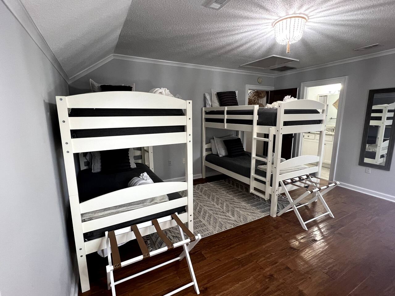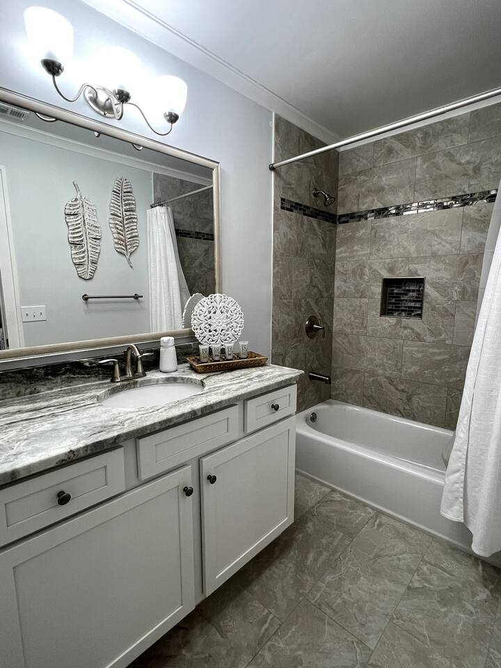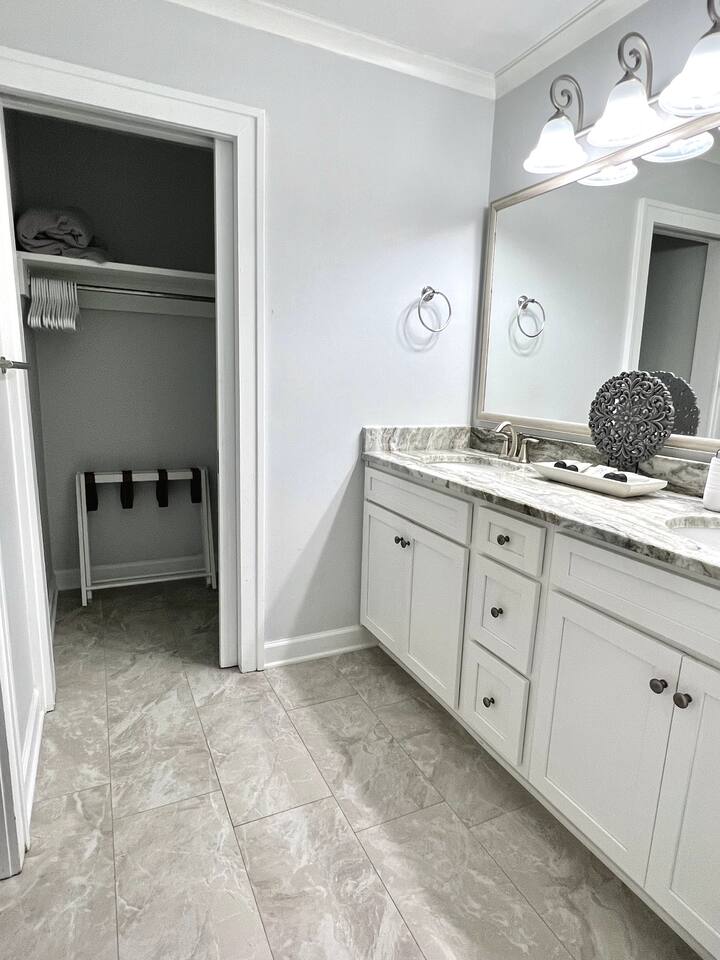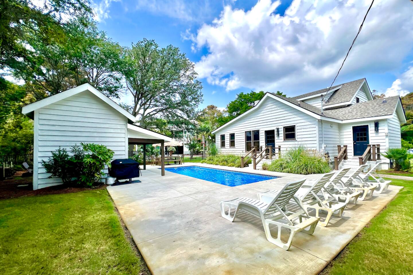We provide all of your basic needs and more. This is one of the things that sets us apart from the other area rentals. We love to take care of our guests and want you to enjoy our home and southern hospitality. * Complimentary snacks, coffee pods, coffee filters, and paper towels to get you going. * Fresh bed linens for each bed are included in the base rental price. All beds will be made up prior to your arrival. * Each bedroom has 2 luggage racks, 2 phone / device charging stations, TV with remote control. * Bath towel, hand towel, and wash cloth for each guest. Kitchen towel set is also provided. We do NOT provide beach towels. * Each full bath has complimentary toiletries. * The kitchen is fully equipped and includes a toaster, blender, hand mixer, electric can opener, tea pot, Keurig coffee maker (brews pods and ground coffee), cocktail shaker, bar tools, cutting boards, cooling racks, baking sheets, mixing bowls, pots and pans, storage containers, pot holders and mits, and a wide assortment of cooking utensils. * Dishwashing tabs, soap, and paper towels to get you started are provided. * Household cleaning items are available for use and stored under the kitchen cabinets. * There a variety of board games, puzzles, and playing cards for all ages stored in the family room. * In the laundry room there is a vacuum, broom, swiffers, fly swatters, ironing board, iron, and first aid kit, as well as NEW full sized washer and dryer. * All closets have hangers * Firewood for the fire pit *Lounge chairs on pool deck *Dining table outside that seats 8 *BBQ grill *Pool house with beach cart, cooler, boogie boards, floats, sand toys, and 6 beach chairs The pool area is very safe for families with children. There are secure gates and fencing enclosing the backyard and warning alarms are on all first floor windows and doors facing the pool. The pool is not heated but is open year round. In the back of the yard is the fire pit area with Adirondack chairs and overhead patio lighting. Some wood to get you started is provided so don't forget to bring the S'mores! The yard is landscaped with assorted tropical plants and various sea grasses so you will truly feel like you’re in Shangra-la ! NO PARTIES! NO SMOKING! NO PETS! Swim diapers are REQUIRED for infants and toddlers NO driving or parking on the grass NO moving or rearranging furniture/decor NO air mattresses are allowed Checkin time is 4 PM. Checkout time is 10 AM. Early checkin or late checkout, if available, can be provided at an additional cost and must be approved in advance. Arriving prior to your checkin time is NOT allowed. This includes parking in the driveway, unloading your vehicle, sitting on the porch, or entering the backyard.