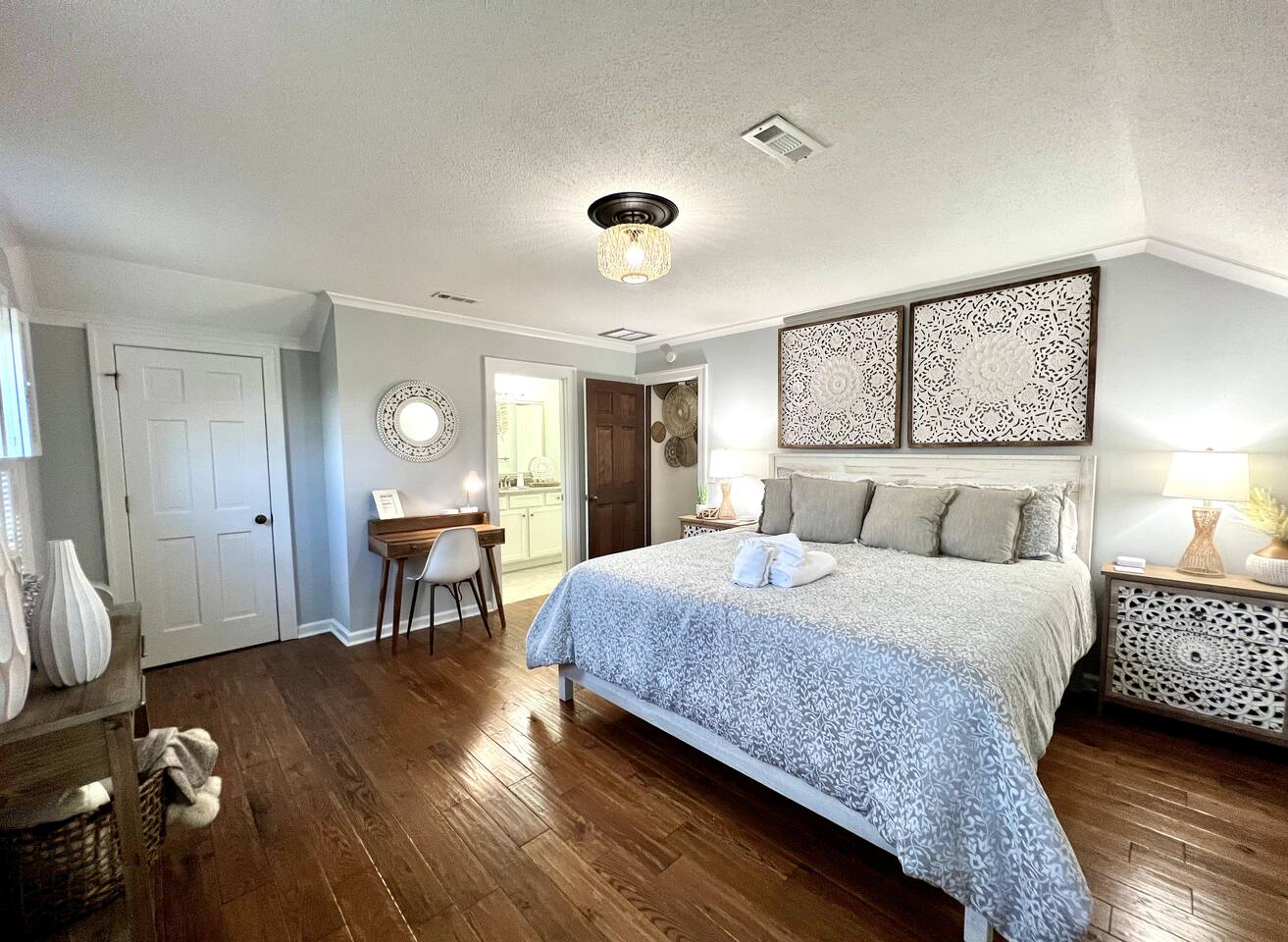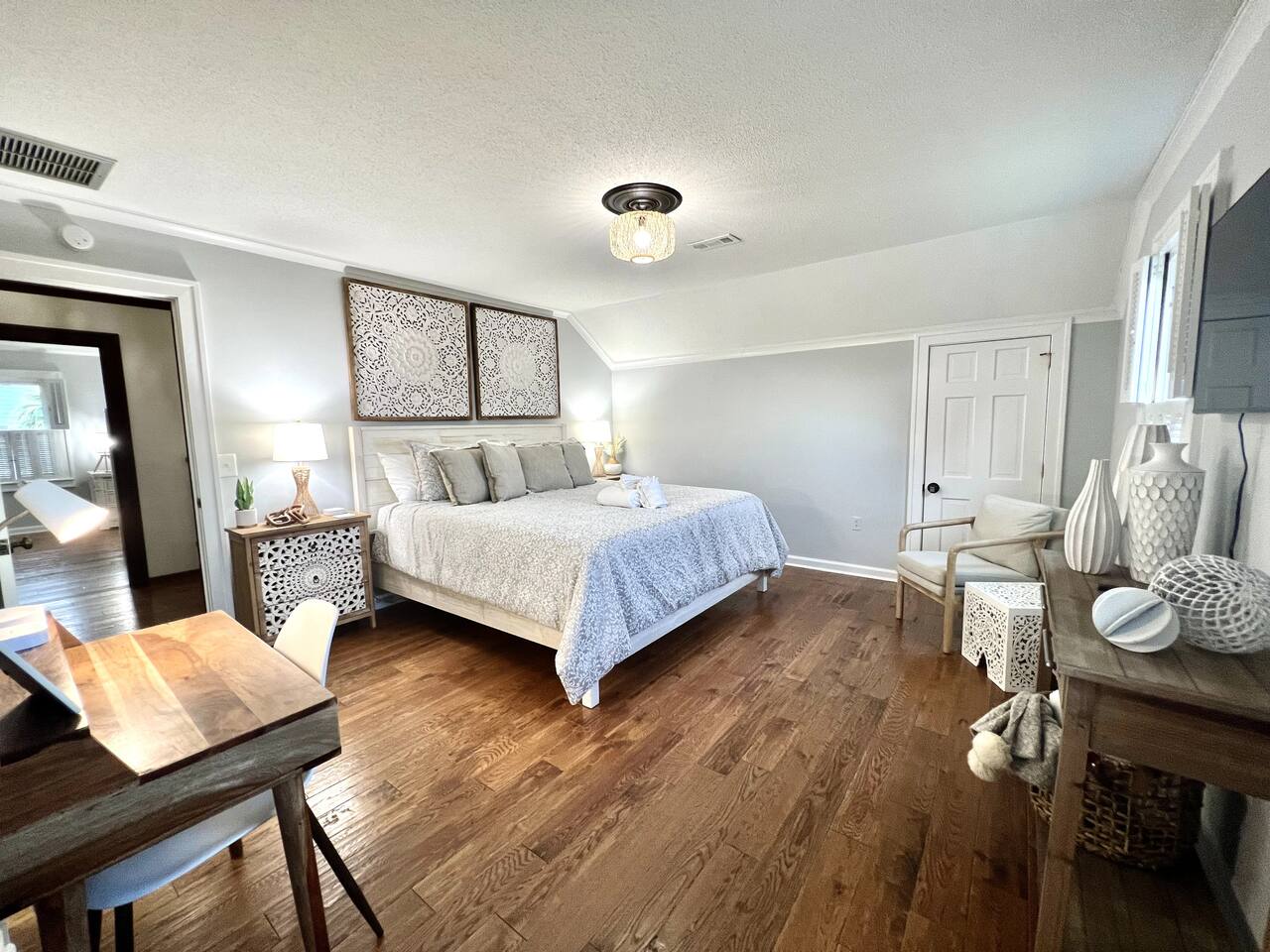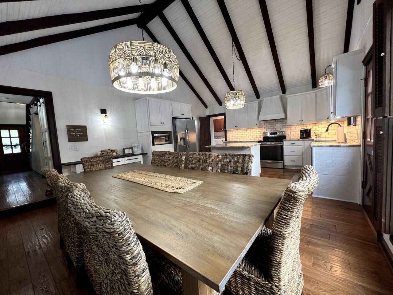 Welcome to "The Good Life", a modern Boho Beach Bungalow located in the prestigious Thilgman Estates section of North Myrtle Beach. Enjoy the day at the beach, which is across the street, or relax in the private backyard oasis. The home features modern boho touches inspired by the sea and nature. Highlights of the house include a gourmet kitchen, inviting family gathering room, spacious bedrooms including 2 masters, large covered front porch, private in-ground pool, firepit, and BBQ area.
