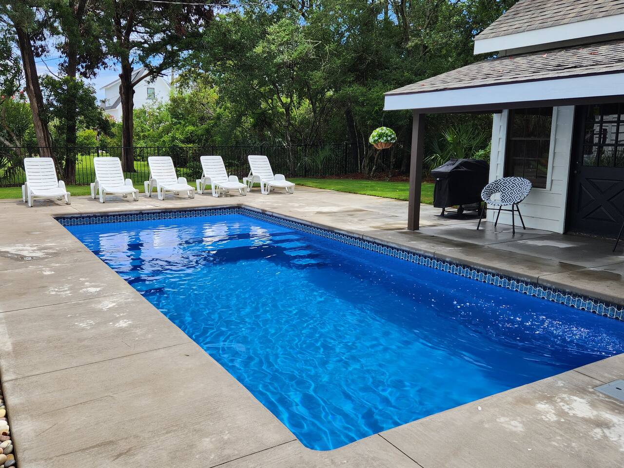 We are local hosts and can be reached by phone if anything is needed. We live a short drive from the property. Our goal is that you have as few interruptions as possible during your stay, however, regular maintenance is required to upkeep and maintain the property. The lawn service company comes on Wednesdays to cut the grass (weather permitting). The pool service company comes on Wednesdays to clean and check/adjust the pool chemistry (weather permitting). You do not need to vacate the property for pool cleaning, but you will need to be out of the pool at this time. **There is an auto-fill mechanism hooked to the hose to keep the pool water at the proper level. Please do not tamper with or remove this device. The automatic lawn irrigation sprinklers are on a timer and will come on during the evenings. Check in time: 4 PM Check out time: 10 AM If available, early check-in or late check out can be accommodated for a fee.